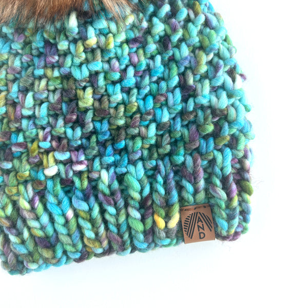 Merino & Peruvian wool is amazingly soft & squishy, as well as being a natural and breathable fiber.  This means it works with your body - keeping you cozy when you need it most, without overheating you.  Also most of our selections of merino wool are hand-dyed in small batches, which creates a very unique one-of-a-kind toque!  If you see one you love, snag it quick! - we can't guarantee we'll get it again!
