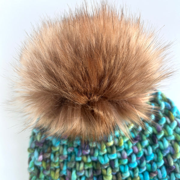 This hat is ready to ship!  You will receive this exact hat, made from 100% Merino Wool & topped with an incredibly fluffy, faux fur pom!